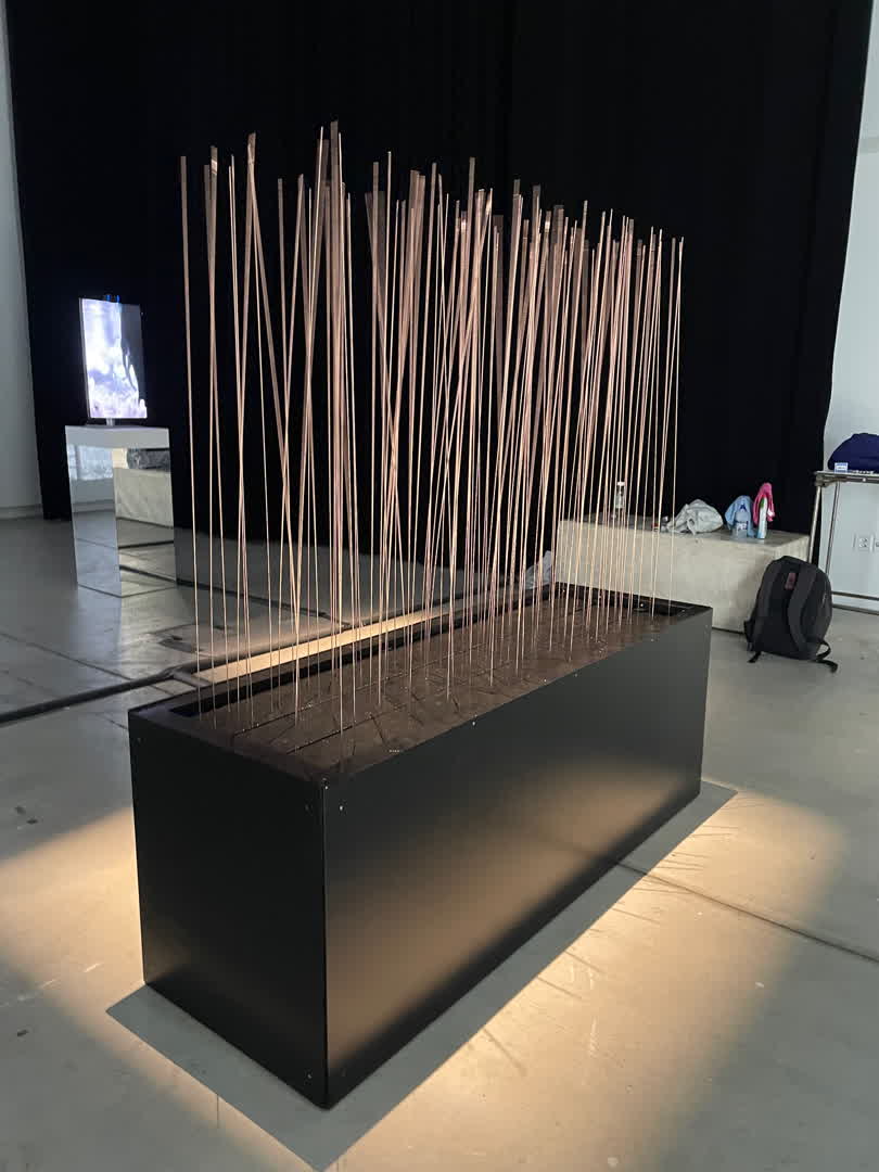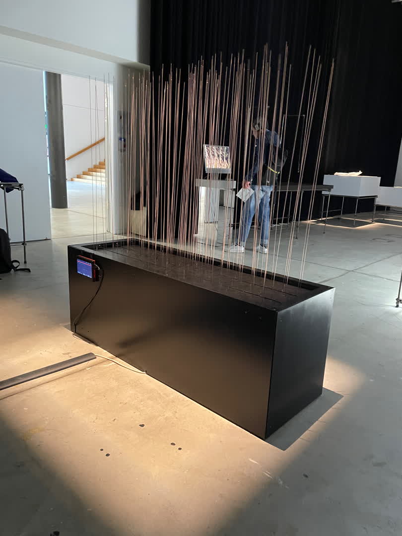 invisible fields is a landscape animated not by the weather, but by the invisible winds of our digital lives. An abstracted cornfield sways in response to the electromagnetic currents of WiFi and Bluetooth traffic—signals usually hidden from our senses, yet constantly surrounding us nearly everywhere. The field becomes more animated as density and proximity of devices increase, while new arrivals spark movement like sudden gusts of wind. Shifting patterns of motion and sound emerge, turning intangible data flows into a sensory encounter. Visitors are invited to experience these ghostly winds, carrying with them the awareness how our lives are woven through with unseen fields of our own making.
