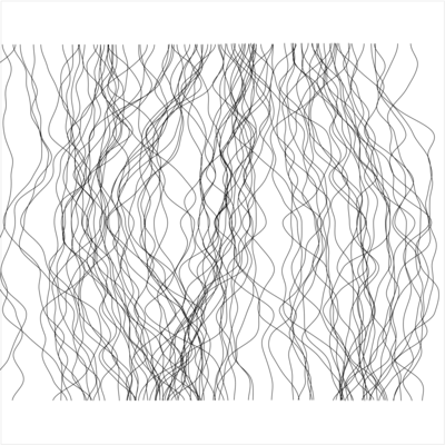 Here I am exploring whether simple Perlin noise can create similar pictures - for this I am starting from a regular grid adding Perlin noise to the positions. After that lines connecting the vertical ‘columns’ are connected.